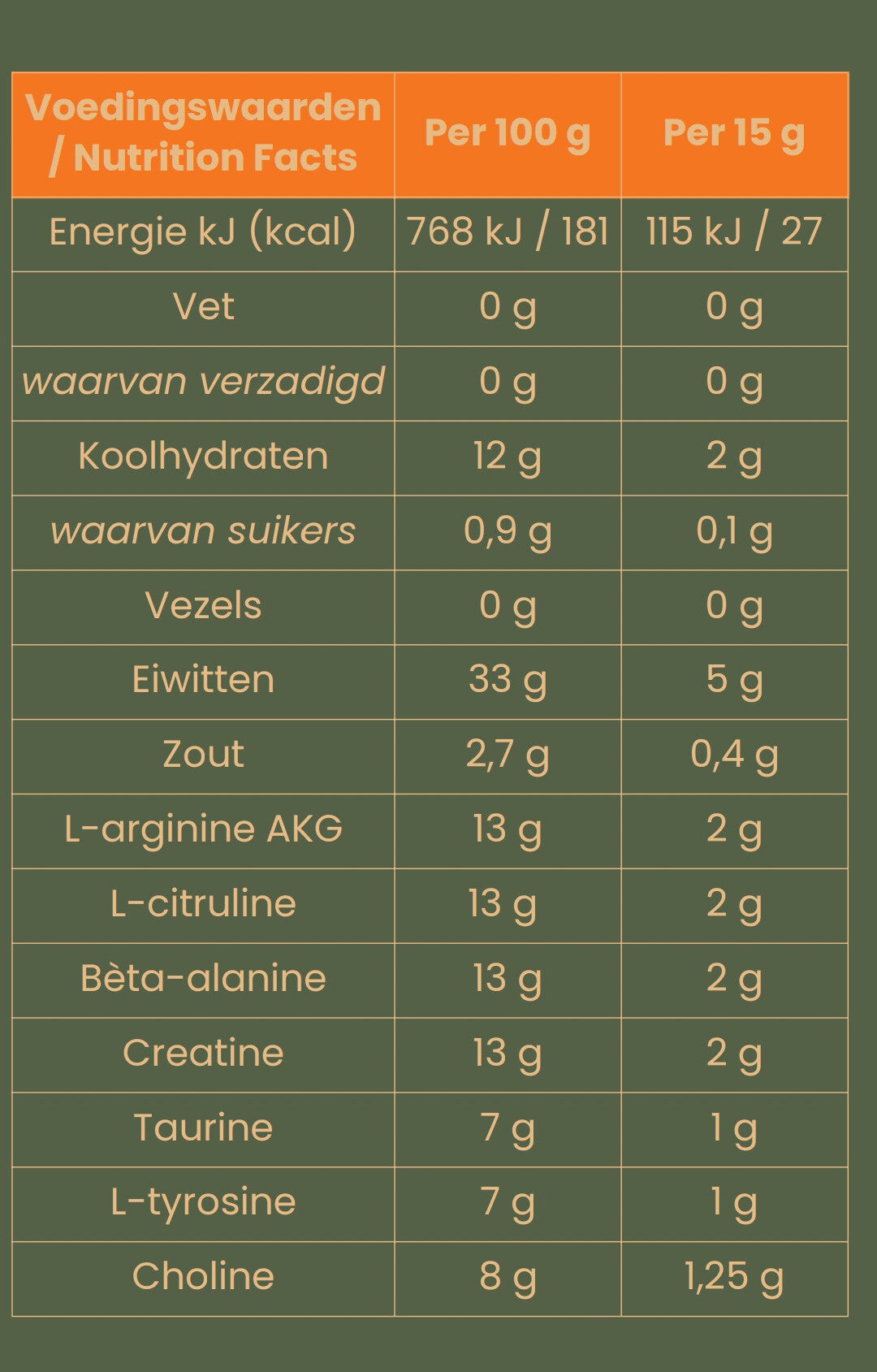 - bèta-alanine : 13 g